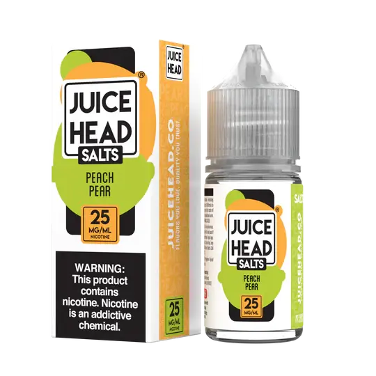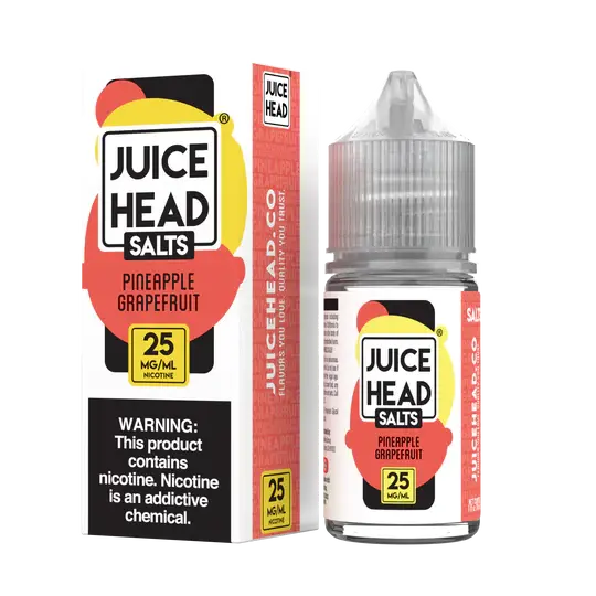 Juice Head line up also offers a premium line up of Salts, also known as Nic Salts in a 30mL Bottle. So go ahead and enjoy our 25mg and our 50mg of each flavor, including our Watermelon Lime, Blueberry Lemon, Pineapple Grapefruit, Strawberry Kiwi, and our Peach Pear.